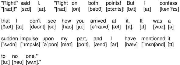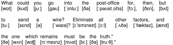 What could you go into the post-office for, then, but to send a wire? Eliminate all other factors, and the one which remains must be the truth.»