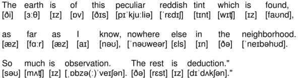 The earth is of this peculiar reddish tint which is found, as far as I know, nowhere else in the neighborhood. So much is observation. The rest is deduction.»