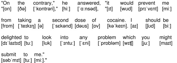 «On the contrary,» he answered, «it would prevent me from taking a second dose of cocaine. I should be delighted to look into any problem which you might submit to me.»