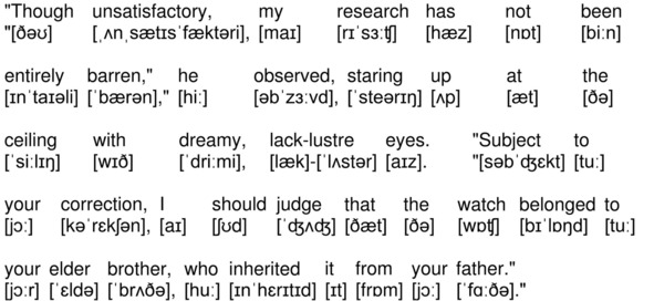«Though unsatisfactory, my research has not been entirely barren,» he observed, staring up at the ceiling with dreamy, lack-lustre eyes. «Subject to your correction, I should judge that the watch belonged to your elder brother, who inherited it from your father.»