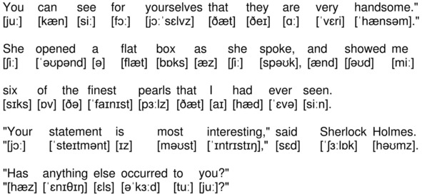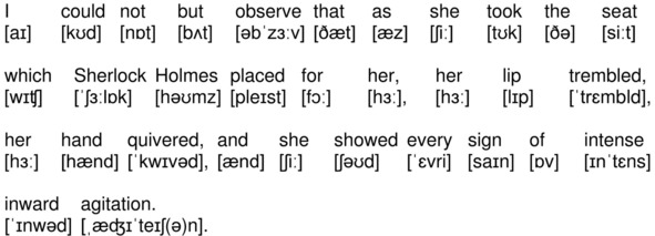 I could not but observe that as she took the seat which Sherlock Holmes placed for her, her lip trembled, her hand quivered, and she showed every sign of intense inward agitation.