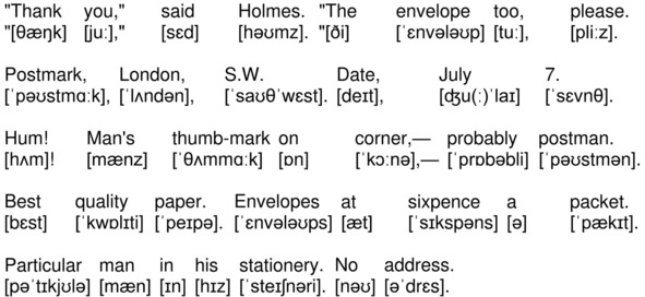 «Thank you,» said Holmes. «The envelope too, please. Postmark, London, S.W. Date, July 7. Hum! Man’s thumb-mark on corner, – probably postman. Best quality paper. Envelopes at sixpence a packet. Particular man in his stationery. No address.