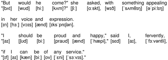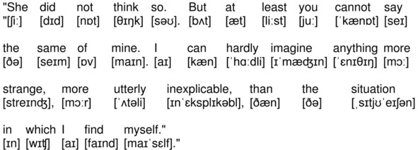 «She did not think so. But at least you cannot say the same of mine. I can hardly imagine anything more strange, more utterly inexplicable, than the situation in which I find myself.»