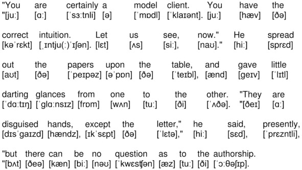 «You are certainly a model client. You have the correct intuition. Let us see, now.» He spread out the papers upon the table, and gave little darting glances from one to the other. «They are disguised hands, except the letter,» he said, presently, «but there can be no question as to the authorship.