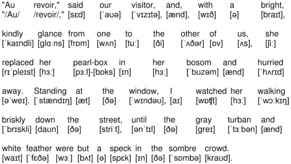 «Au revoir,» said our visitor, and, with a bright, kindly glance from one to the other of us, she replaced her pearl-box in her bosom and hurried away. Standing at the window, I watched her walking briskly down the street, until the gray turban and white feather were but a speck in the sombre crowd.