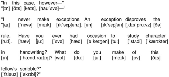 «I never make exceptions. An exception disproves the rule. Have you ever had occasion to study character in handwriting? What do you make of this fellow’s scribble?»