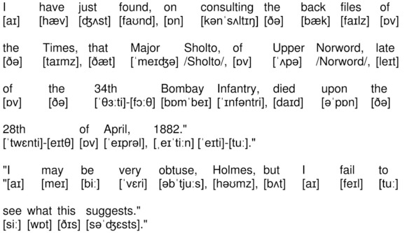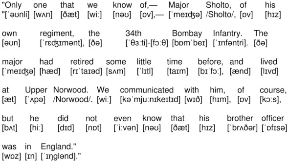 «No? You surprise me. Look at it in this way, then. Captain Morstan disappears. The only person in London whom he could have visited is Major Sholto. Major Sholto denies having heard that he was in London. Four years later Sholto dies.