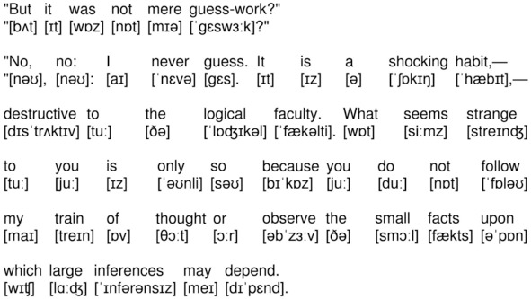«No, no: I never guess. It is a shocking habit, – destructive to the logical faculty. What seems strange to you is only so because you do not follow my train of thought or observe the small facts upon which large inferences may depend.