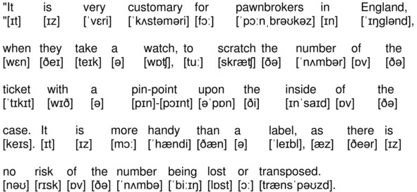 «It is very customary for pawnbrokers in England, when they take a watch, to scratch the number of the ticket with a pin-point upon the inside of the case. It is more handy than a label, as there is no risk of the number being lost or transposed.