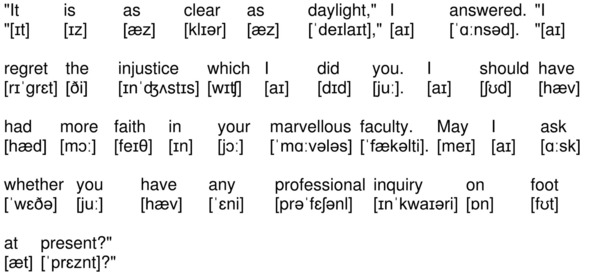 «It is as clear as daylight,» I answered. «I regret the injustice which I did you. I should have had more faith in your marvellous faculty. May I ask whether you have any professional inquiry on foot at present?»