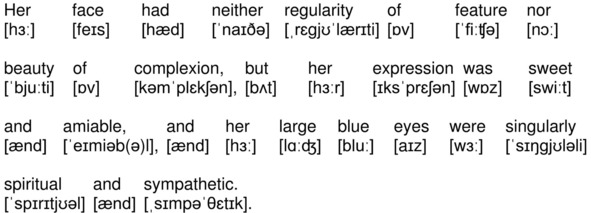 Her face had neither regularity of feature nor beauty of complexion, but her expression was sweet and amiable, and her large blue eyes were singularly spiritual and sympathetic.
