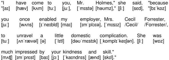 «I have come to you, Mr. Holmes,» she said, «because you once enabled my employer, Mrs. Cecil Forrester, to unravel a little domestic complication. She was much impressed by your kindness and skill.»