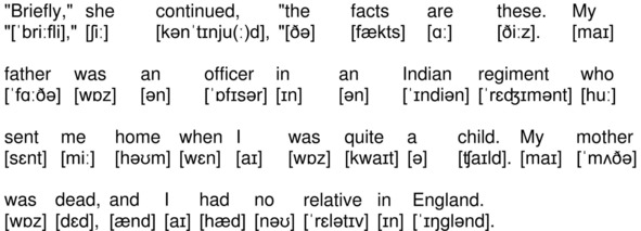 «Briefly,» she continued, «the facts are these. My father was an officer in an Indian regiment who sent me home when I was quite a child. My mother was dead, and I had no relative in England.