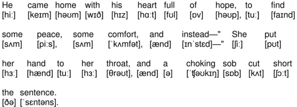 He came home with his heart full of hope, to find some peace, some comfort, and instead – » She put her hand to her throat, and a choking sob cut short the sentence.