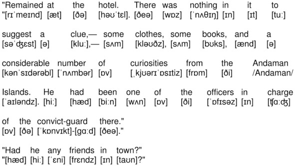 «Remained at the hotel. There was nothing in it to suggest a clue, – some clothes, some books, and a considerable number of curiosities from the Andaman Islands. He had been one of the officers in charge of the convict-guard there.»