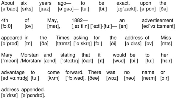 About six years ago – to be exact, upon the 4th of May, 1882—an advertisement appeared in the Times asking for the address of Miss Mary Morstan and stating that it would be to her advantage to come forward. There was no name or address appended.