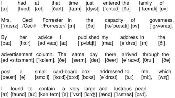 I had at that time just entered the family of Mrs. Cecil Forrester in the capacity of governess. By her advice I published my address in the advertisement column. The same day there arrived through the post a small card-board box addressed to me, which I found to contain a very large and lustrous pearl.