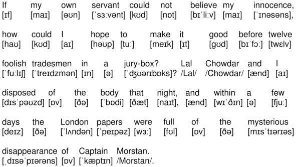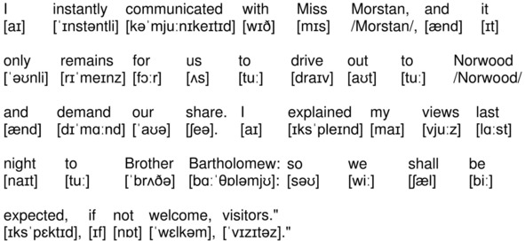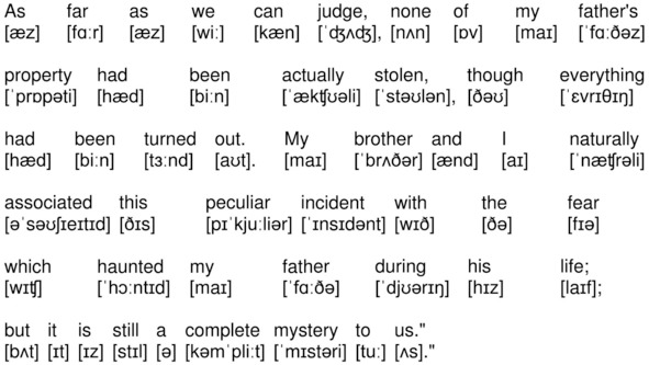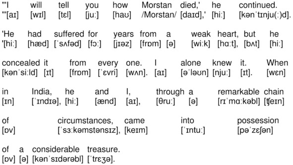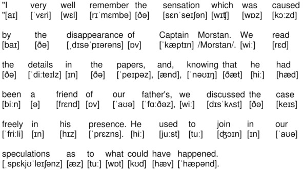 «I very well remember the sensation which was caused by the disappearance of Captain Morstan. We read the details in the papers, and, knowing that he had been a friend of our father’s, we discussed the case freely in his presence. He used to join in our speculations as to what could have happened.