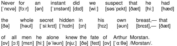Never for an instant did we suspect that he had the whole secret hidden in his own breast, – that of all men he alone knew the fate of Arthur Morstan.