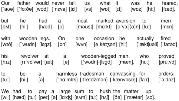 Our father would never tell us what it was he feared, but he had a most marked aversion to men with wooden legs. On one occasion he actually fired his revolver at a wooden-legged man, who proved to be a harmless tradesman canvassing for orders. We had to pay a large sum to hush the matter up.