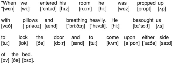 «When we entered his room he was propped up with pillows and breathing heavily. He besought us to lock the door and to come upon either side of the bed.