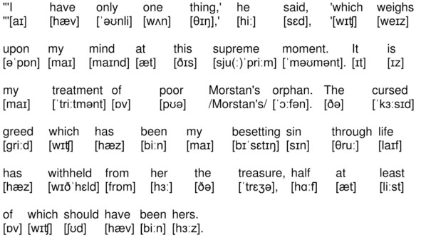 ««I have only one thing,» he said, ’which weighs upon my mind at this supreme moment. It is my treatment of poor Morstan’s orphan. The cursed greed which has been my besetting sin through life has withheld from her the treasure, half at least of which should have been hers.