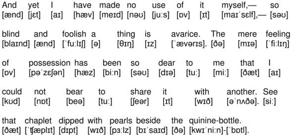 And yet I have made no use of it myself, – so blind and foolish a thing is avarice. The mere feeling of possession has been so dear to me that I could not bear to share it with another. See that chaplet dipped with pearls beside the quinine-bottle.