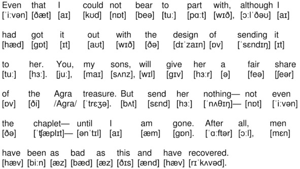 Even that I could not bear to part with, although I had got it out with the design of sending it to her. You, my sons, will give her a fair share of the Agra treasure. But send her nothing – not even the chaplet – until I am gone. After all, men have been as bad as this and have recovered.