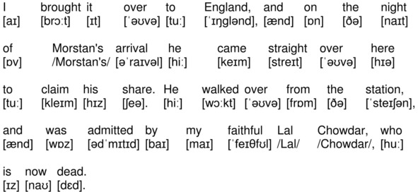 I brought it over to England, and on the night of Morstan’s arrival he came straight over here to claim his share. He walked over from the station, and was admitted by my faithful Lal Chowdar, who is now dead.