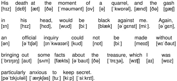 His death at the moment of a quarrel, and the gash in his head, would be black against me. Again, an official inquiry could not be made without bringing out some facts about the treasure, which I was particularly anxious to keep secret.