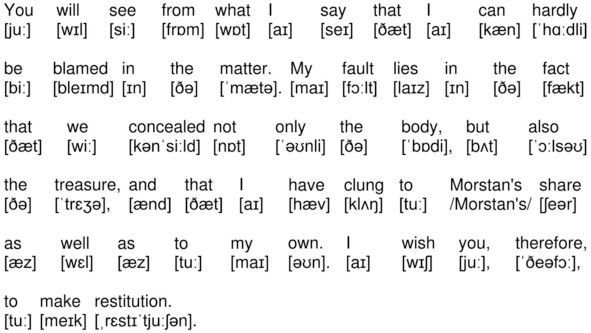 You will see from what I say that I can hardly be blamed in the matter. My fault lies in the fact that we concealed not only the body, but also the treasure, and that I have clung to Morstan’s share as well as to my own. I wish you, therefore, to make restitution.