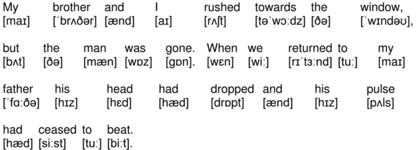 My brother and I rushed towards the window, but the man was gone. When we returned to my father his head had dropped and his pulse had ceased to beat.