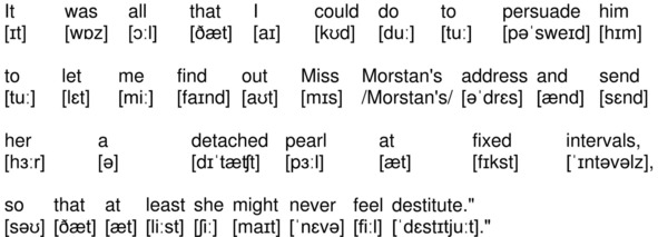It was all that I could do to persuade him to let me find out Miss Morstan’s address and send her a detached pearl at fixed intervals, so that at least she might never feel destitute.»