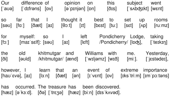 Our difference of opinion on this subject went so far that I thought it best to set up rooms for myself: so I left Pondicherry Lodge, taking the old khitmutgar and Williams with me. Yesterday, however, I learn that an event of extreme importance has occurred. The treasure has been discovered.