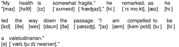 «My health is somewhat fragile,» he remarked, as he led the way down the passage. «I am compelled to be a valetudinarian.»