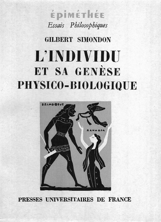 «Индивид и его физико-биологическое происхождение» (vidu et sa genèse physico-biologique PUF, 1964) – так называлась первая часть основного труда. Вторая часть вышла под заголовком «Психическая и коллективная индивидуация» (L’Individuation psychique et collective, Aubier, 1989; Millon, 1995).