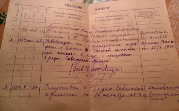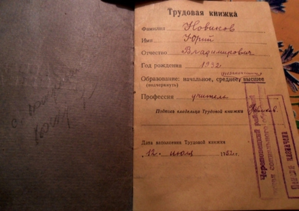 Трудовая книжка Ю.В.Новикова