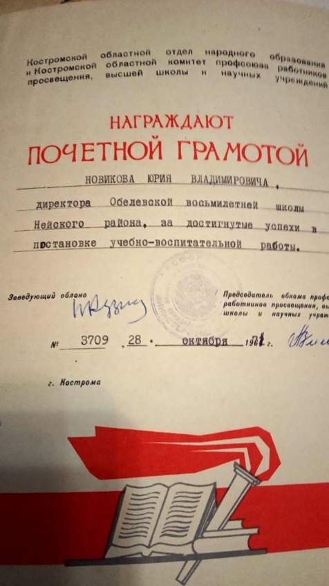 Директор Обелевской восьмилетней школы Ю.В.Новиков 1969 г.