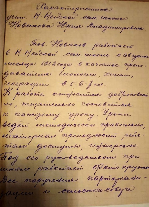 Директор Заингирьской школы Ю.В.Новиков 1959 год