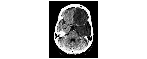 Рисунок 1. КТ-картина ОНМК по ишемическому типу в бассейне левой каротидной артерии