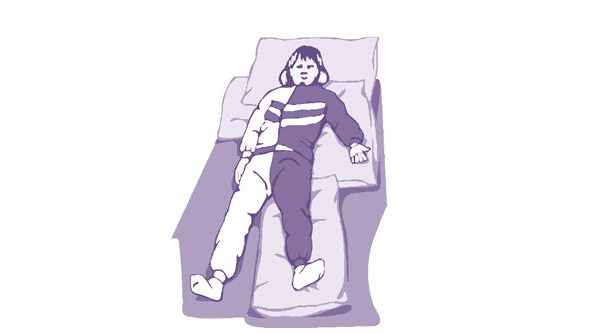 Пациентам, для которых процедура вертикализации в связи с тяжестью состояния является невозможной, необходимо при лечении положением использовать, в том числе укладку на спине с высоким изголовьем (Фаулерово положение) (рис. 7). Пациент с ишемическим инсультом может быть уложен на приподнятое изголовье (угол изголовья около 30°) с первых суток заболевания.