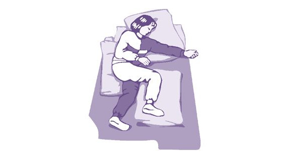 В положении лежа на здоровой стороне голова пациента должна находится на одной линии с туловищем, пациент лежит полностью на боку, а не повернут на ¼ тело не изогнуто, пораженное плечо вынесено вперед, рука поддержана по всей длине, кисть «больной» руки находится в среднефизиологическом положении, не свисает с подушки, не следует ничего класть в «больную» руку и стопа ни во что не упирается.