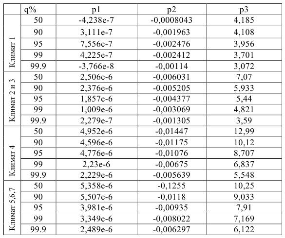 где p1, р2, р3 – коэффициенты аппроксимации, зависящие от q, приведены в таблице 7 для применяемых на практике значений q.
