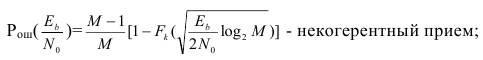Для многоуровневой модуляции вероятность ошибочного приема будет определяться по формуле: