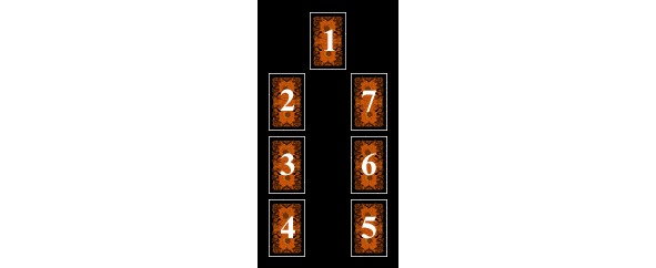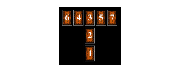 Смысл расклада: «встретить свою судьбу лицом к лицу», то есть осознать свою проблему, проанализировать обстоятельства, ей сопутствующие и найти выход. Из Старших Арканов выбирается карта для позиции 1, остальные выбираются из Младших.