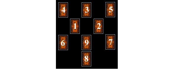 9 – раскрывается в последнюю очередь. Если это карта старшего Аркана – значит судьба на вашей стороне, она дает вам возможность разобраться в происходящем и ситуация будет развиваться в вашу пользу. Если же это карта младших Арканов, это означает, что главная первопричина происходящего осталась в тени, и события могут принять очень неблагоприятный для вас оборот.