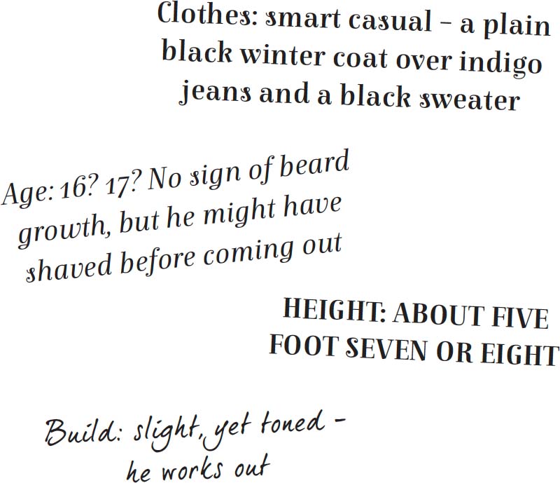 ‘Er … please can I have everyone’s attention for a moment?’ We turn round as Mrs Shelley, our art teacher, is trying to make herself noticed. All her clothes are drab browns and greys, and even her hair is an indeterminate sort of browny grey. She’s like a washed-out, watercolour version of a person. I find myself wondering what Agatha Christie’s Poirot would have made of her if he’d met her. I imagine my favourite detective nodding wisely and saying, ‘Non, mam’selle, there is no such thing as a really calm sea,’ in his Belgian accent. And maybe he’d have been right – perhaps Mrs Shelley does have hidden depths.