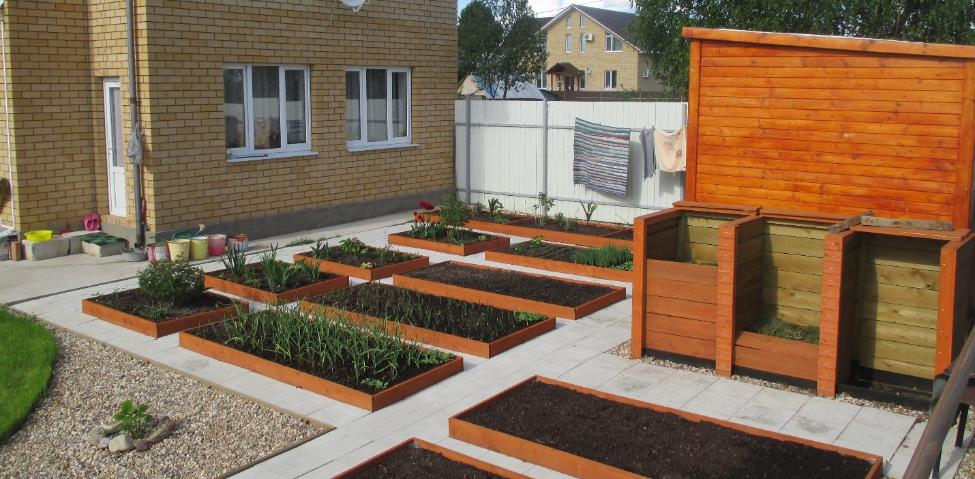 Рис. 1.8. Хозяйственный блок, грядки и компост