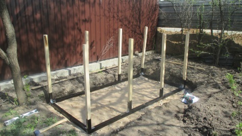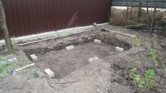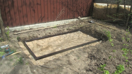 Для повышения устойчивости конструкции можно сделать фундамент или подложить строительные материалы в виде кирпичей, брусчатки, плитки и т.п. Выравниваем их по горизонту при помощи строительного уровня.