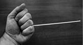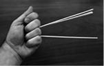3. Одну палочку из правого пучка зажимаем между мизинцем и безымянным пальцем левой руки: